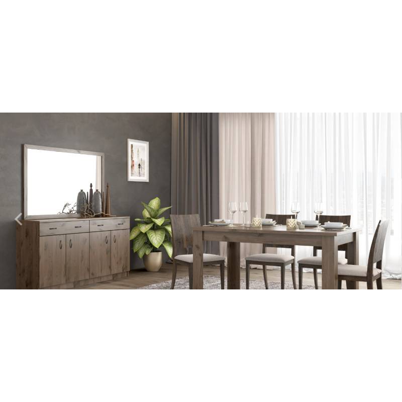 Μπουφές μοντέρνου σχεδιασμού με καθρέφτη, ιδανικός για σαλόνι, τραπεζαρία ή είσοδο. Διαθέτει πρακτικούς αποθηκευτικούς χώρους και κομψή αισθητική που ταιριάζει σε κάθε χώρο. Διαστάσεις μπουφέ: 160x38x84 εκ. Διαστάσεις καθρέφτη 140x90. Διατίθεται και σε άλλες αποχρώσεις. Σκούρο καρυδί, σκούρο δρυς, καστανή, λάττε, μελί, σταχτί.